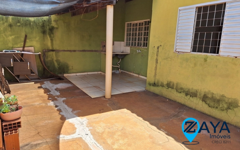 Casa com 2 quartos, sala, banheiro, cozinha, área de serviço e cozinha.