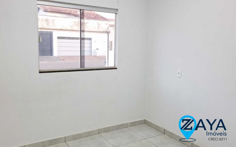 Casa com 3 quartos sendo 1 suíte, sala, banheiro, cozinha, área de serviço e garagem.
